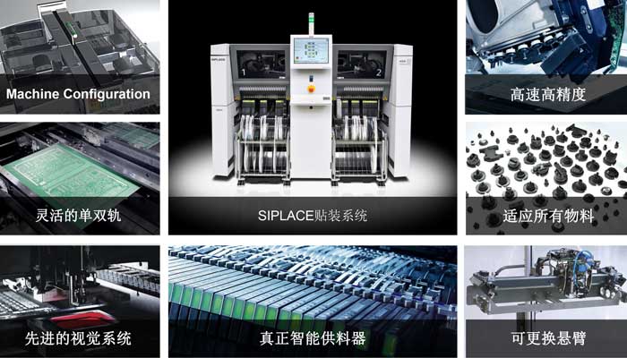 高速度高精度貼裝03015元件,為零為良率而設計,靈活的單雙軌,先進的視覺系統,真正的智能供料,適應所有物料,可更換懸臂,